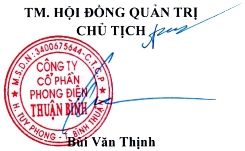 Administrative Council decided to vote Mr. Huynh Thanh Hai as Chairman of Binh Thuan Wind power Joint stock Company for time remaining of term 2019-2023.