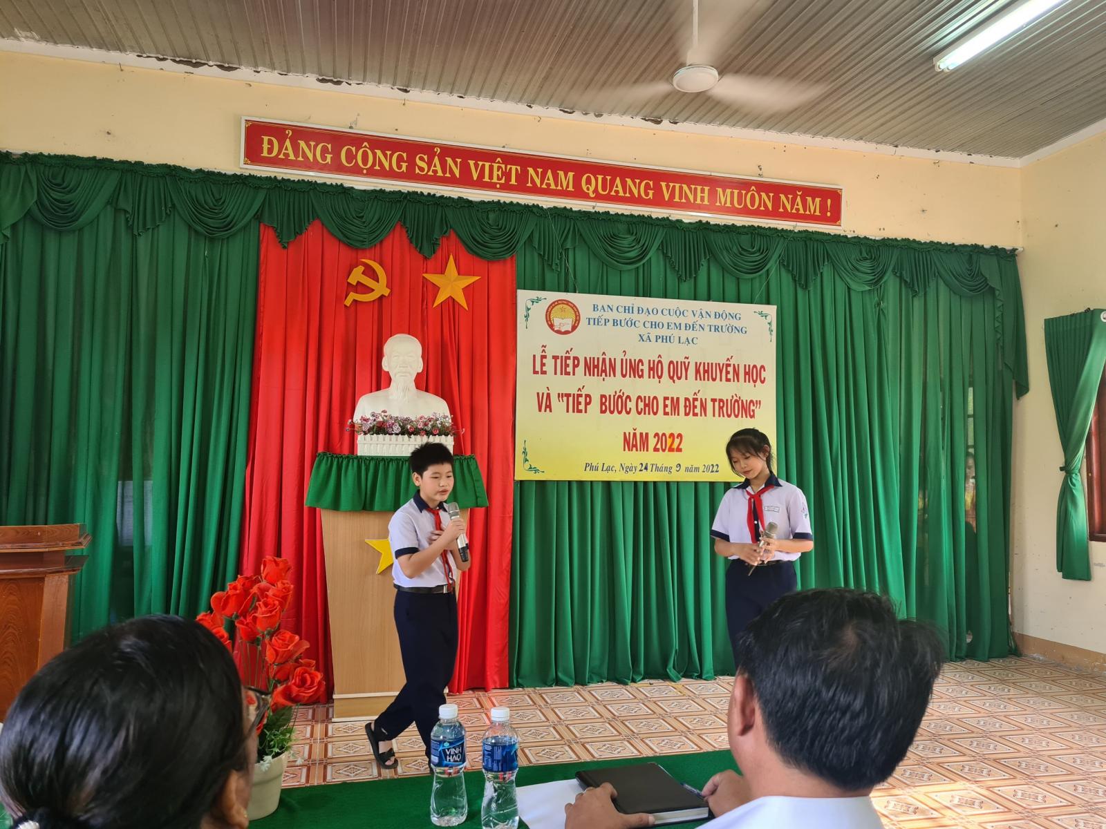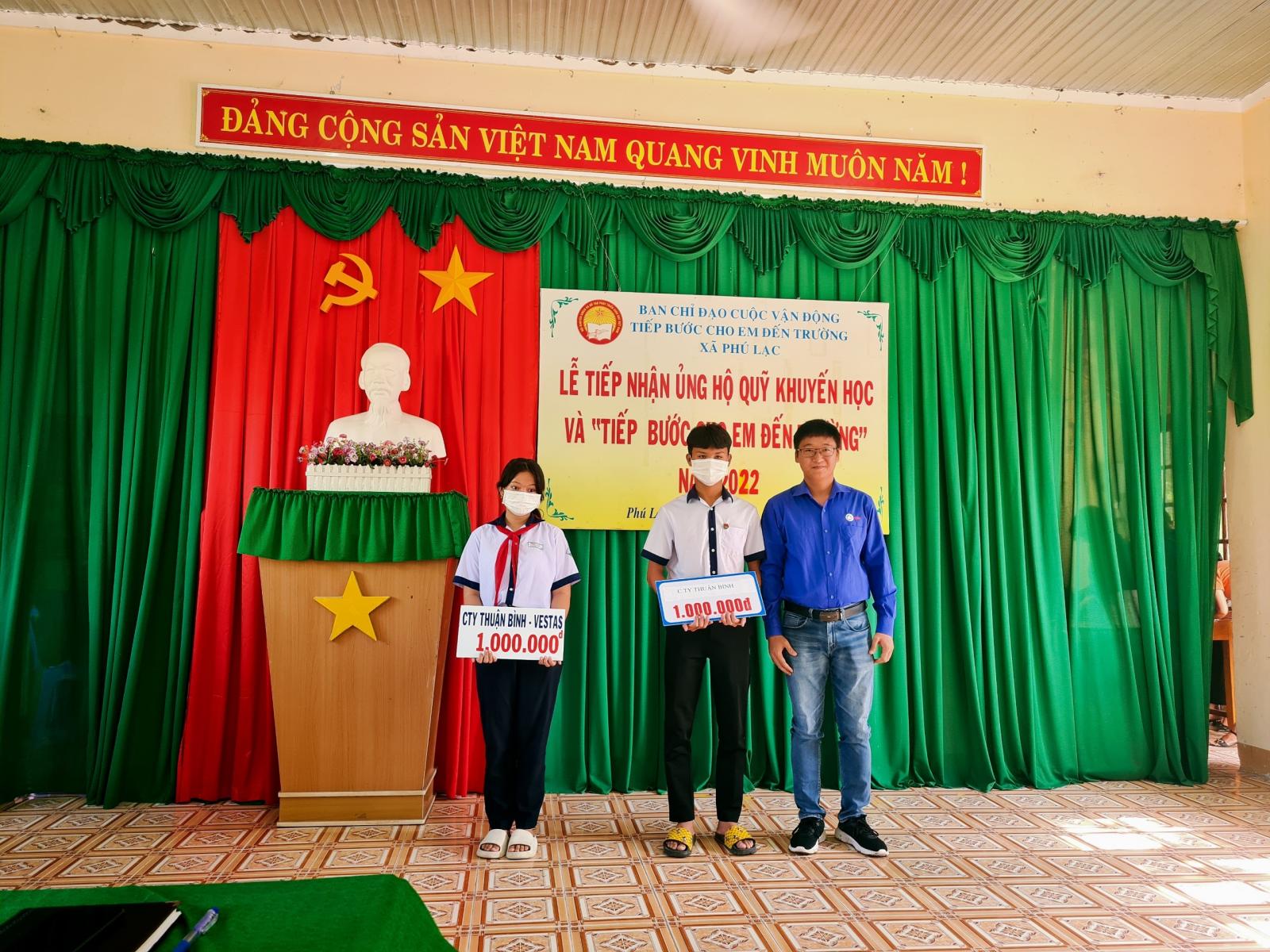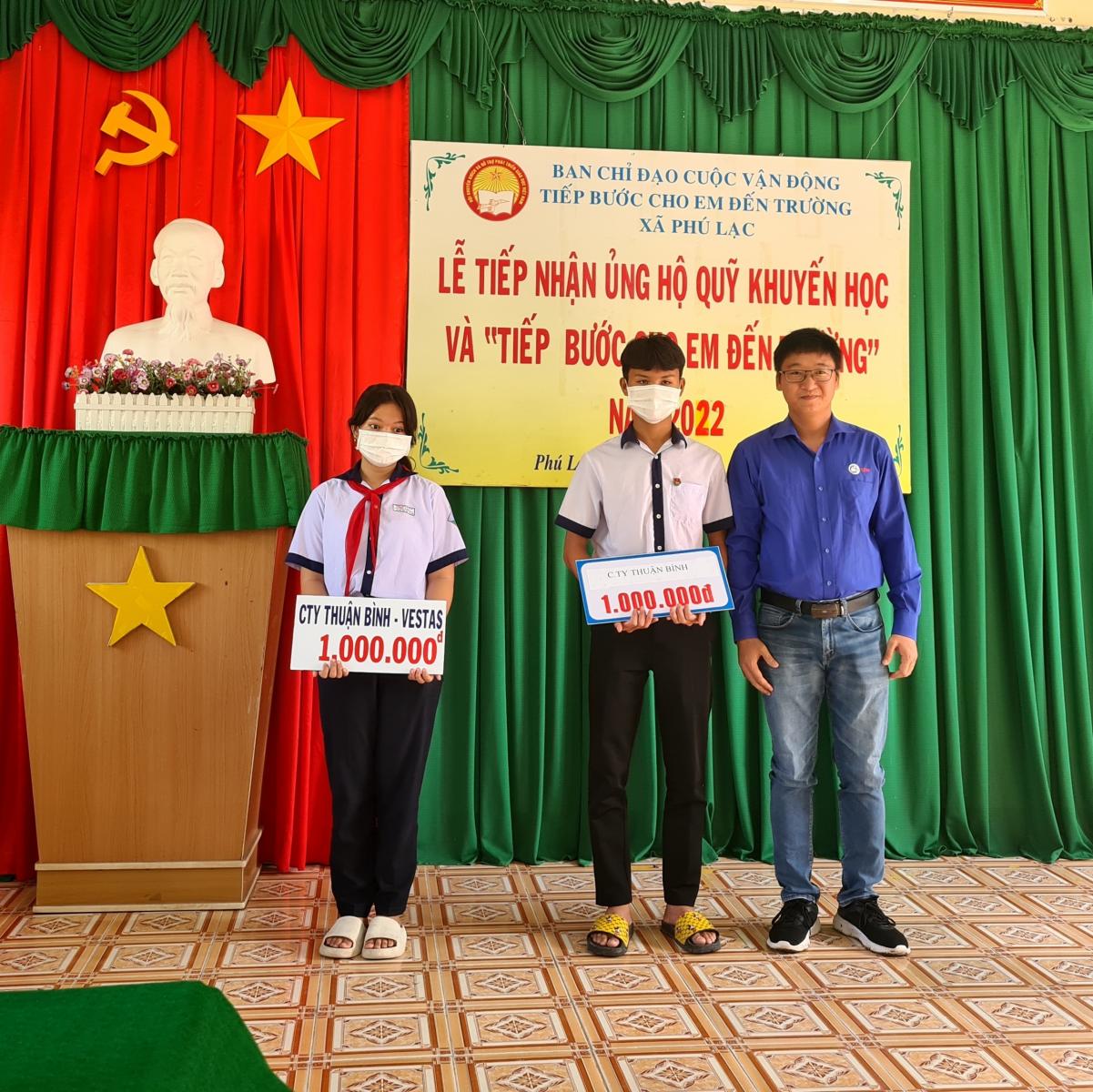 Lễ tiếp nhận Ủng hộ Quỹ khuyến học và "Tiếp bước cho em đến trường 2022" tại Ubnd xã Phú Lạc, Công ty Cổ phần phong điện Thuận Bình và Vestas Việt Nam được ghi nhận đóng góp nhiều nhất vào quỹ Khuyến học Xã năm 2022. Mong các cháu tận dụng nguồn quỹ tạo động lực học tập tốt, lan tỏa kết quả để có thêm nhiều nguồn tài trợ thêm nữa từ các mạnh thường quân tiếp sức cho các cháu khác có hoàn cảnh khó khăn trên địa bàn Xã Phú Lạc!